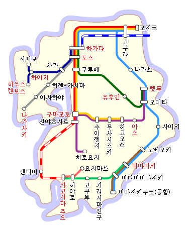 아무튼 큐슈안에서 맨 윗쪽에서 아랫쪽 가는데