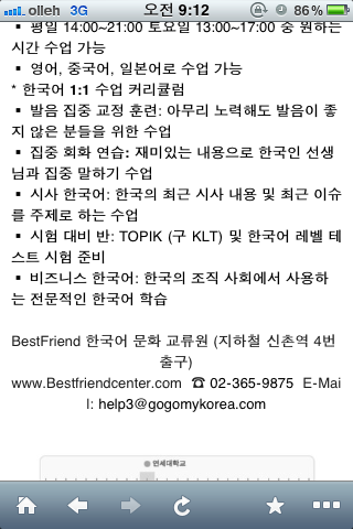 이렇게 당시 한국어 학교들을 알아보기까지 했었다..