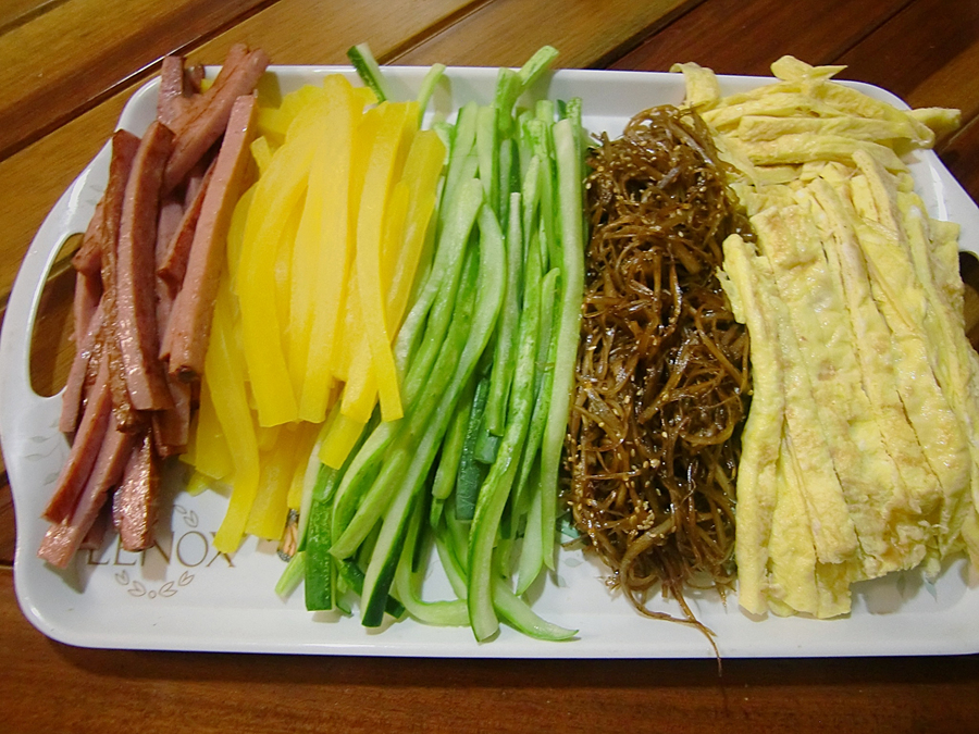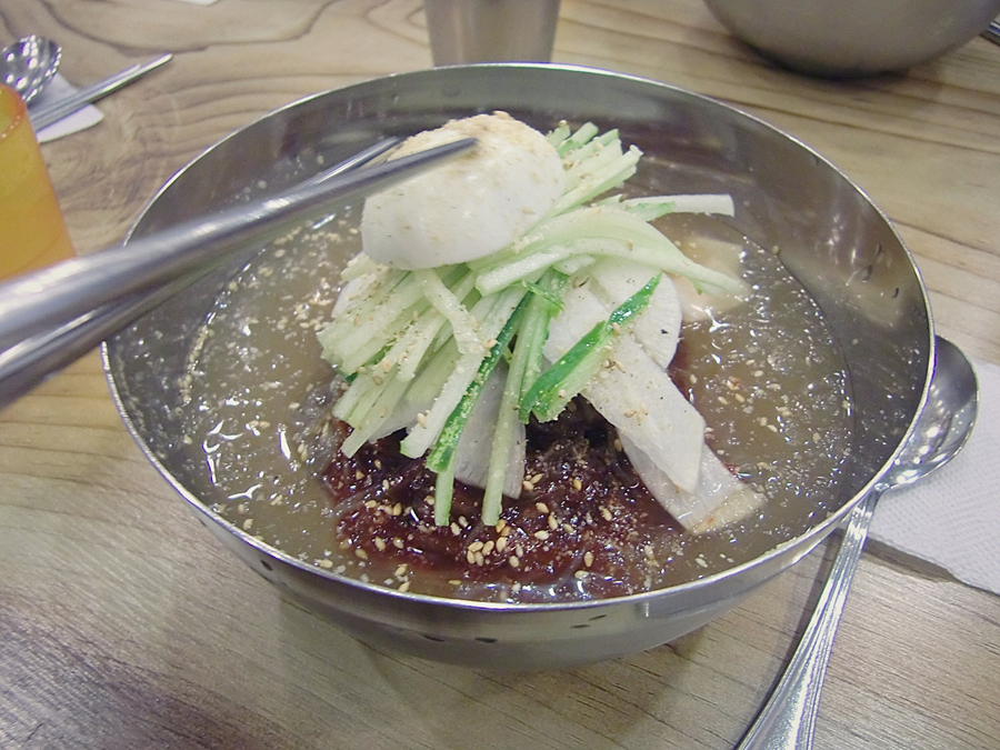 ![]() 고기가 있는 냉면을 먹었다