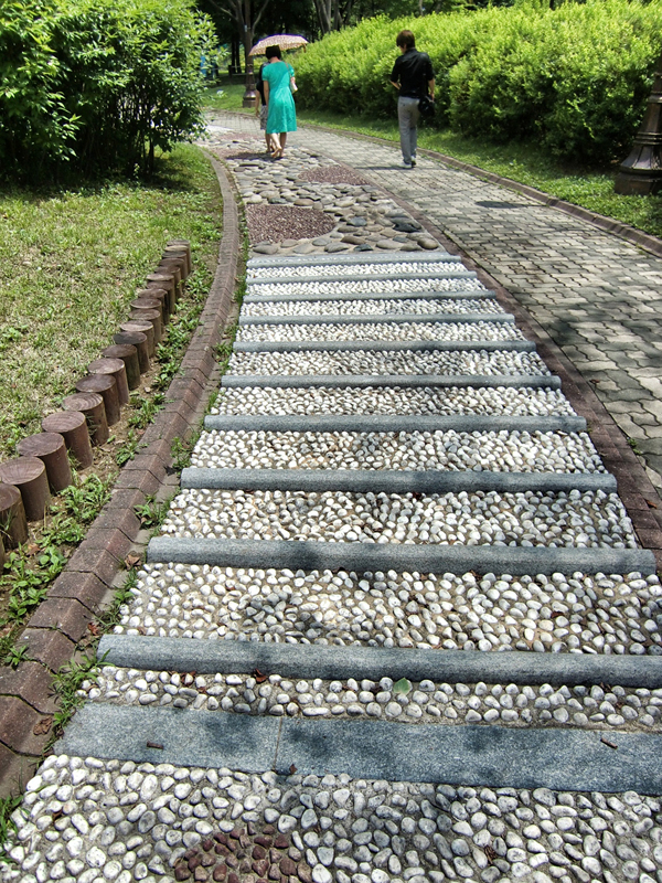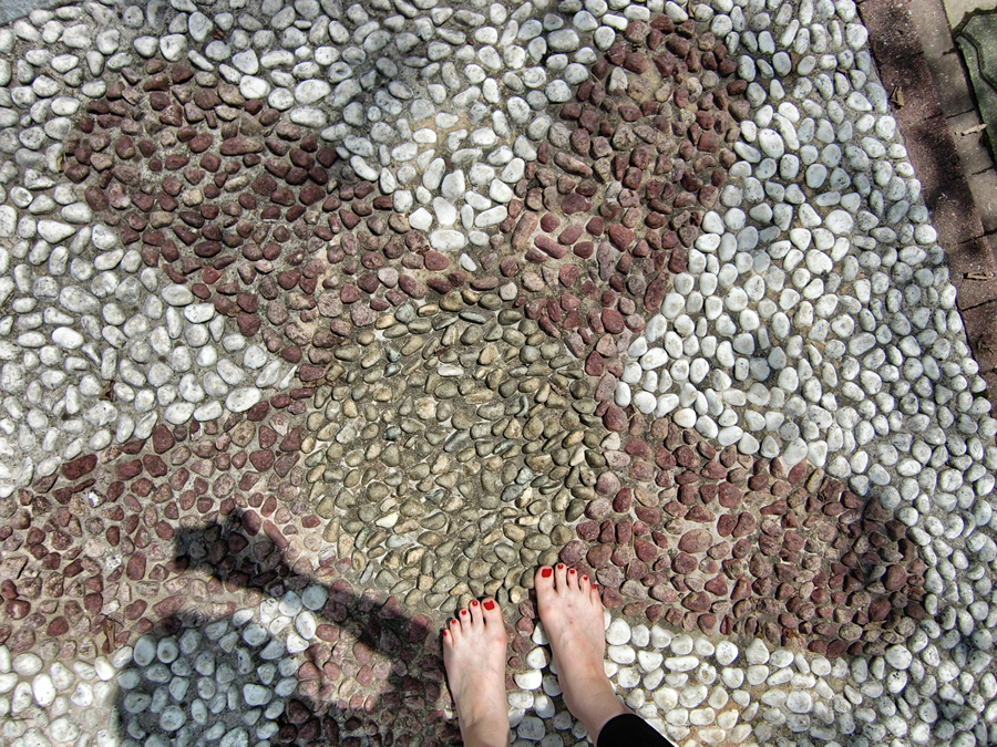 바닥에 돌부리에 부딛혀서