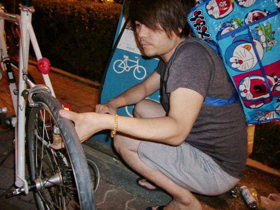 너무 힘차게 패달을 밟아서 뒤로 넘어졌는데