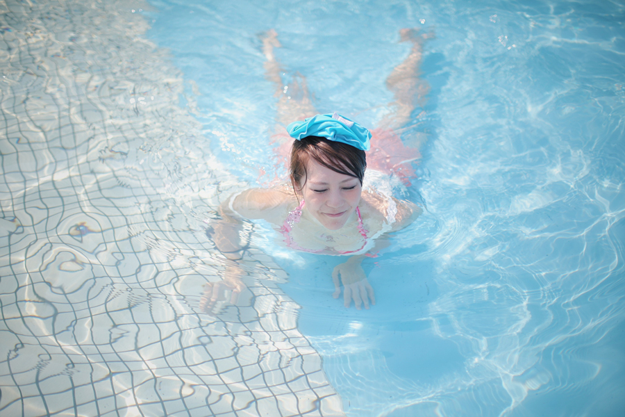 그녀가 살고 있는 오무타시의 시민 풀장에 왔다 (오무타엔메이 푸-루)