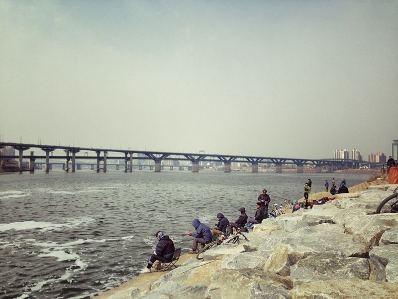 도심안의 한강에서 저렇게 낚시를 하고 있는게