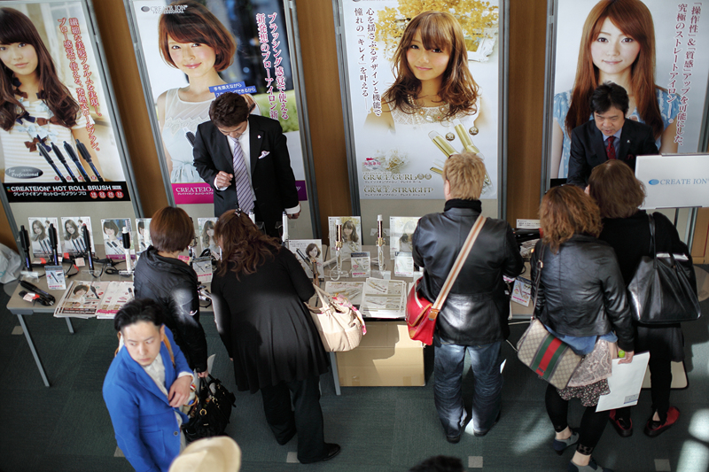 ![]() 신제품을 구경하는 미용인들