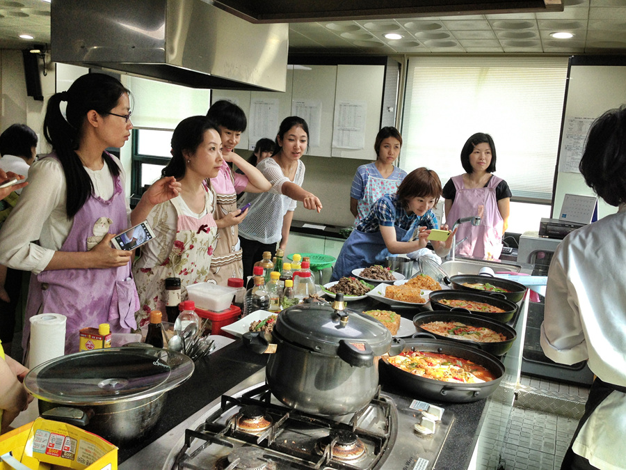 다양한 다문화주부들이 모여서 따로 요리를 배우는