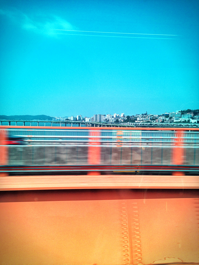 전철을 타고 이동하고 있습니다