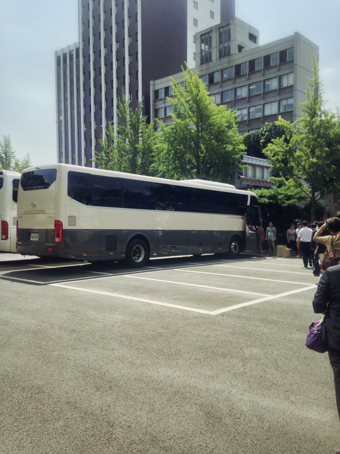 전용 버스를 타고 이동합니다