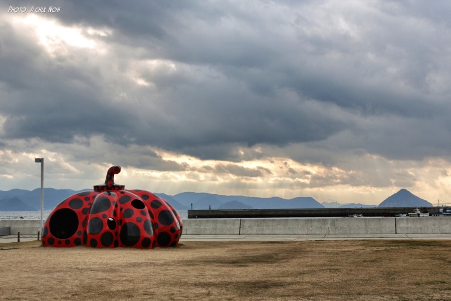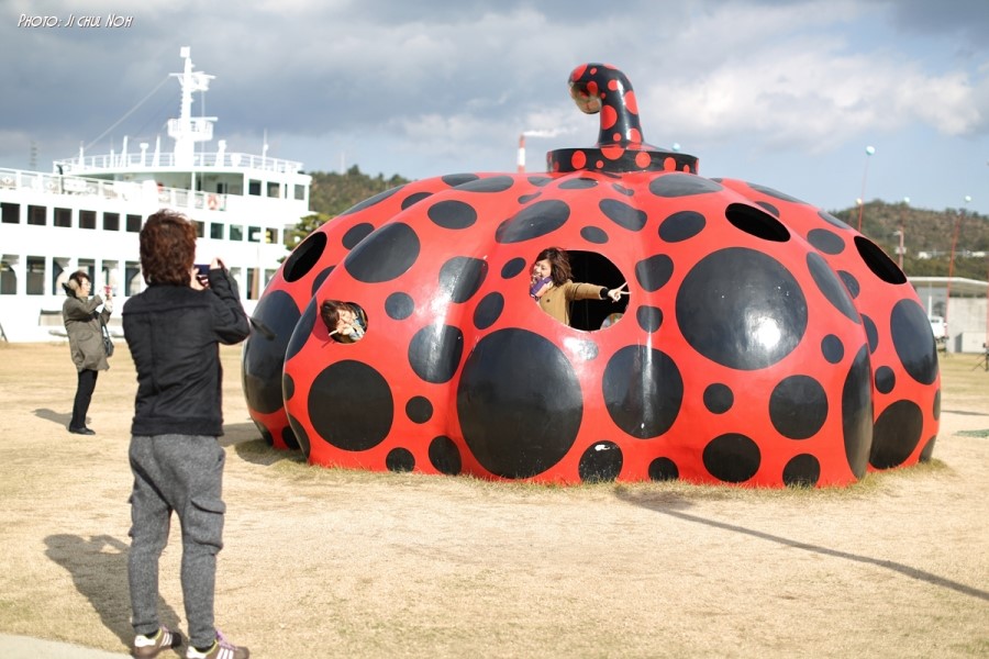 이 섬은 바로 쿠사마 야오이의 예술의 섬 나오시마입니다