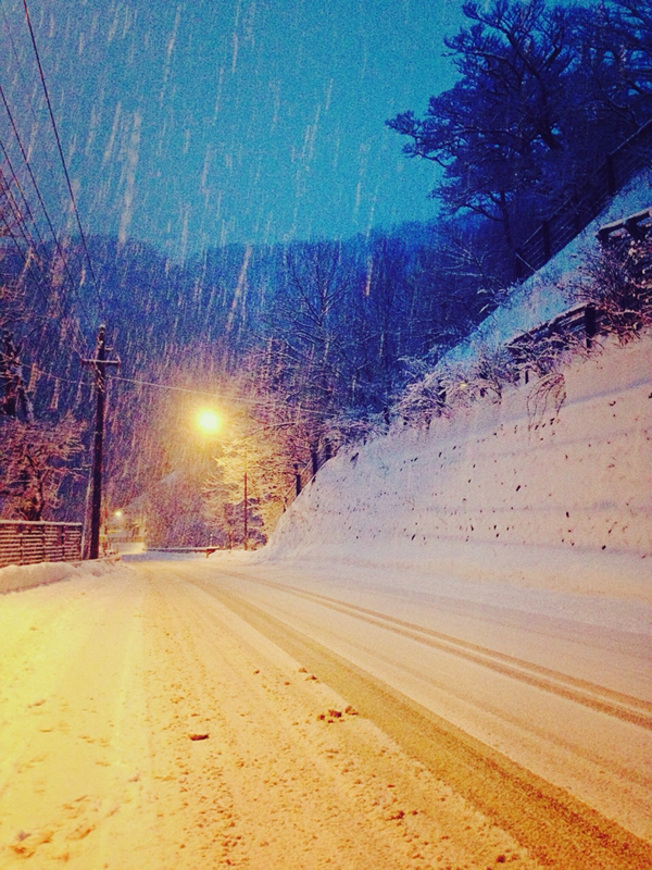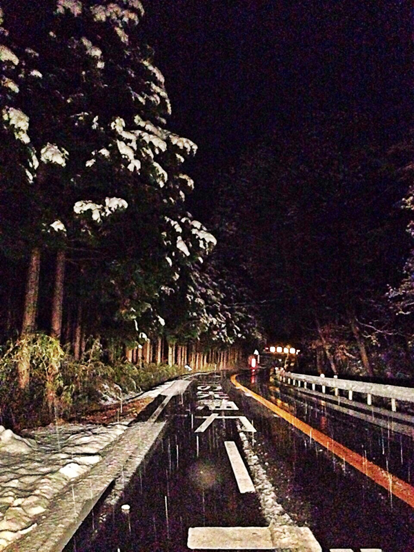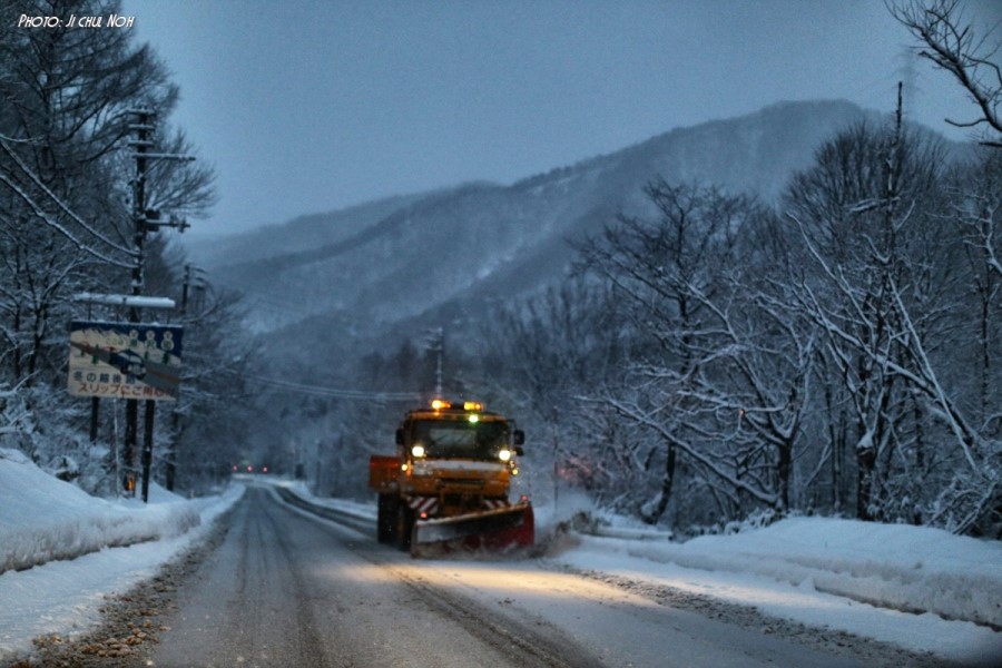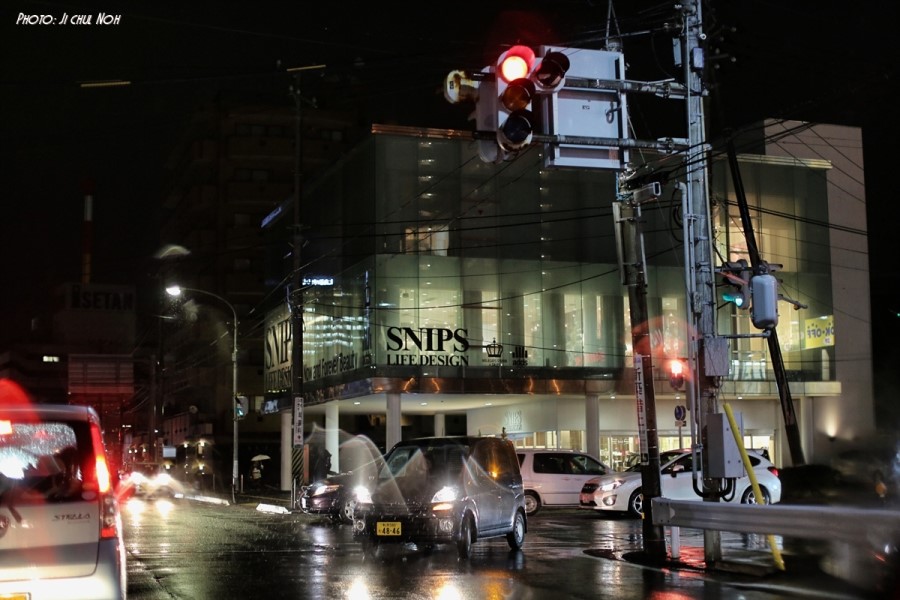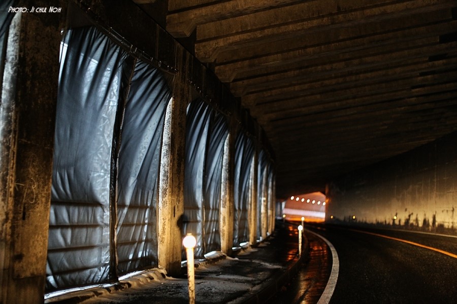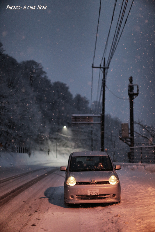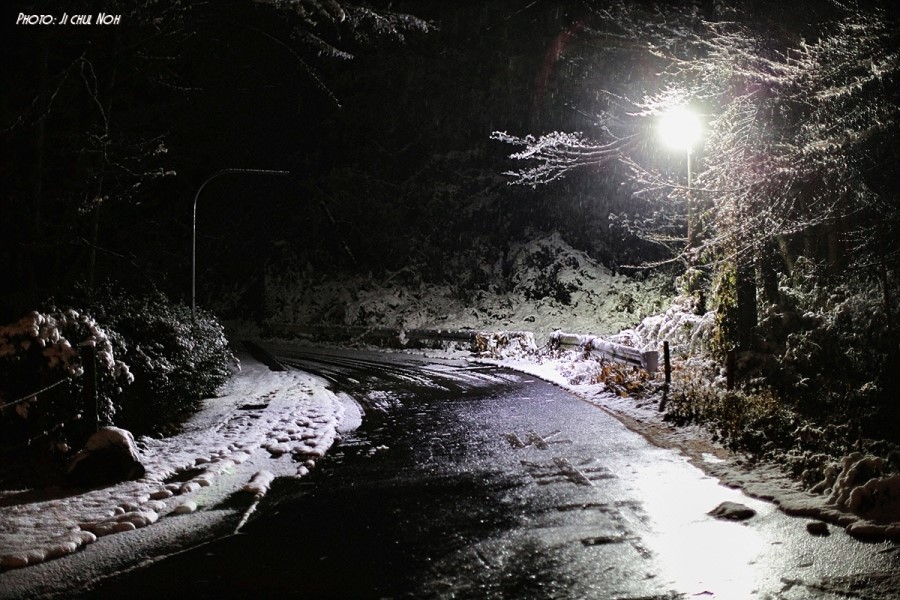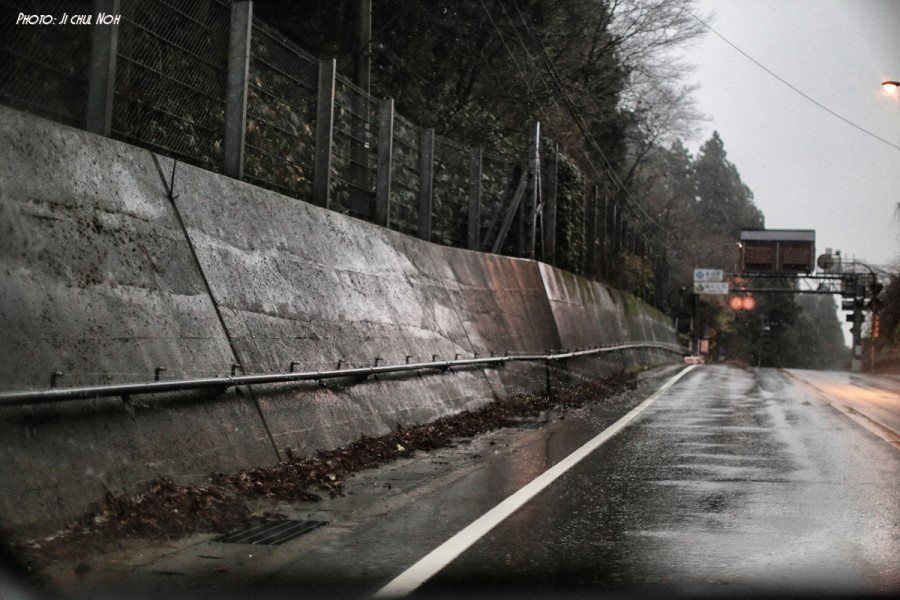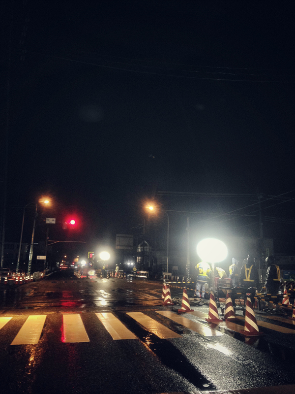 ![]() 눈에 띄던 작업용 라이트와 젖은 노면