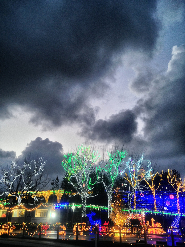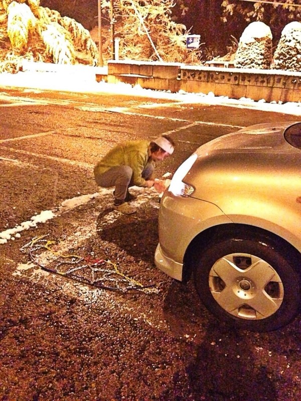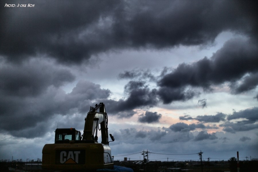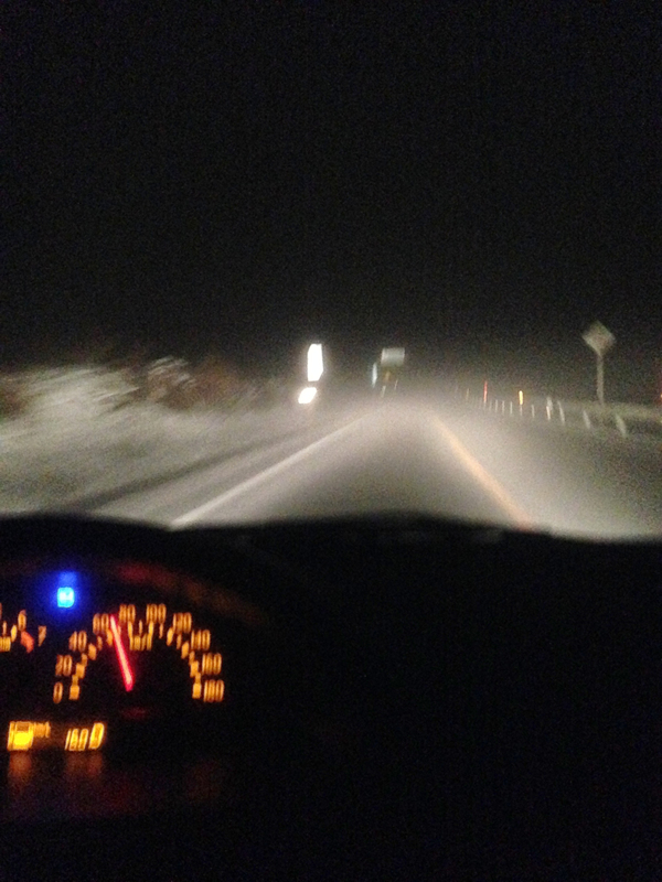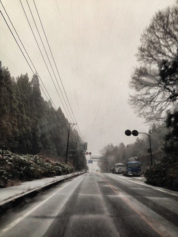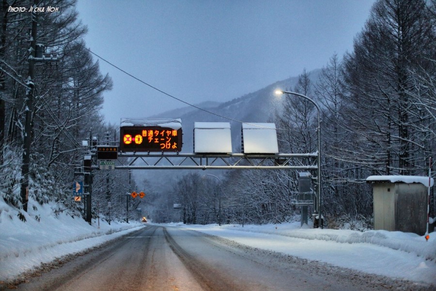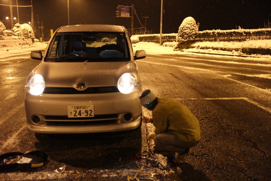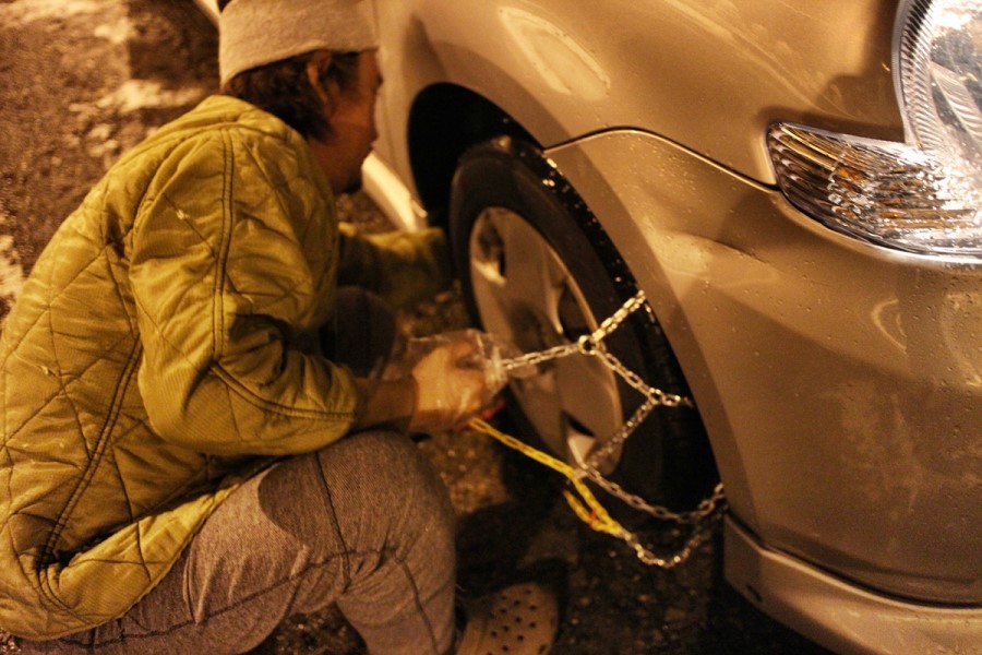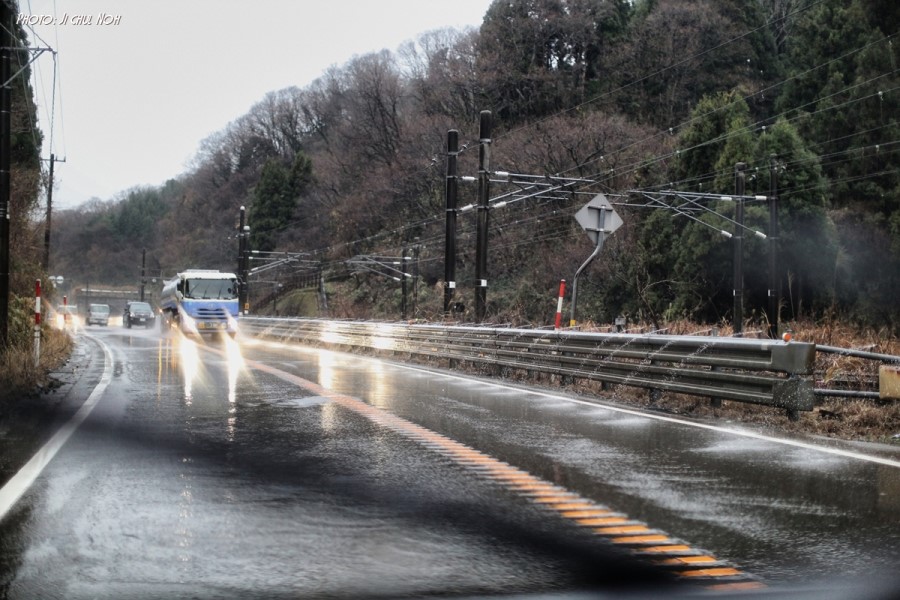 ![]() 눈에 띄던 작업용 라이트와 젖은 노면