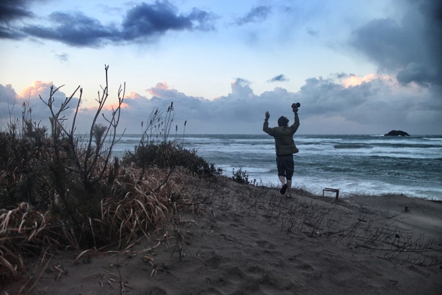 '일본의 돗토리 사막의 깔깔이 한국남자