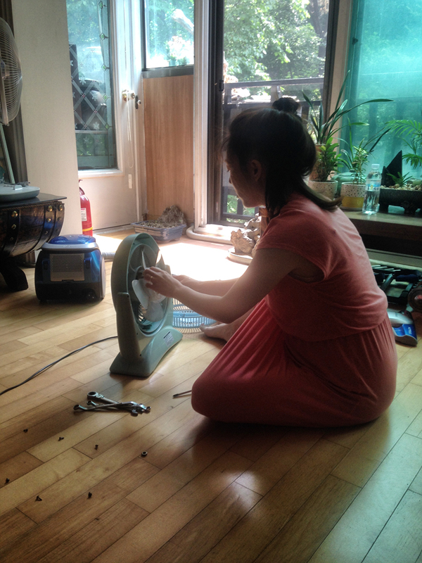 손수 선풍기 청소를 하고 계신 에미씨