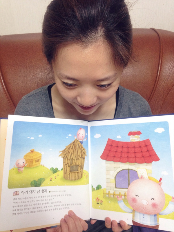 에미: "아기돼지 삼새끼 읽고 있습니다"