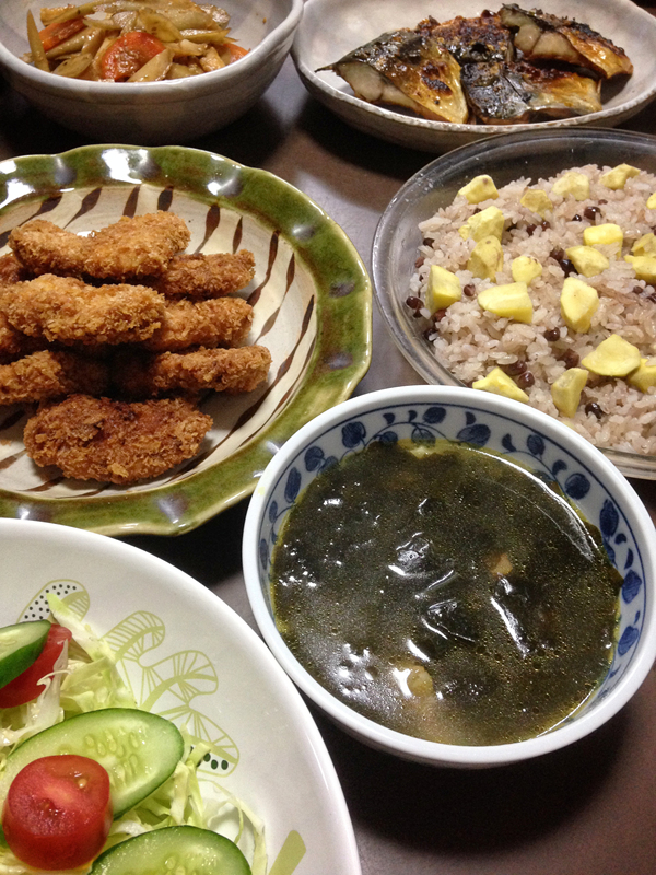 미역국을 빼면 일상적인 일본식 밥상입니다