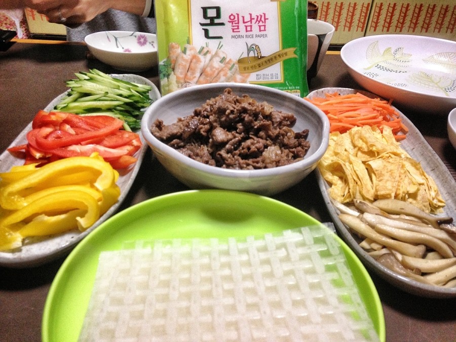 한국에서 가지고 왔던 월남쌈 종이를 보곤