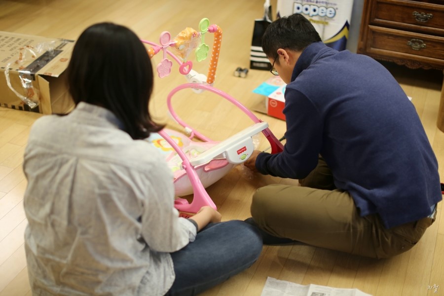 란이 선물로 들어온 바운서?를 조립해주시는
