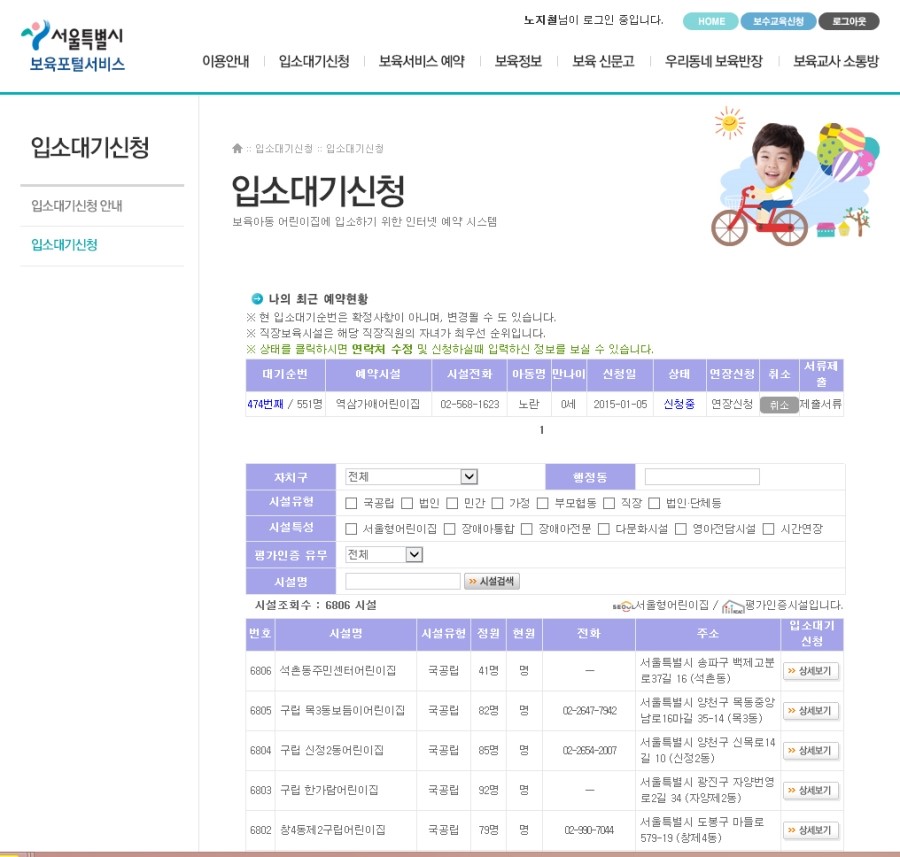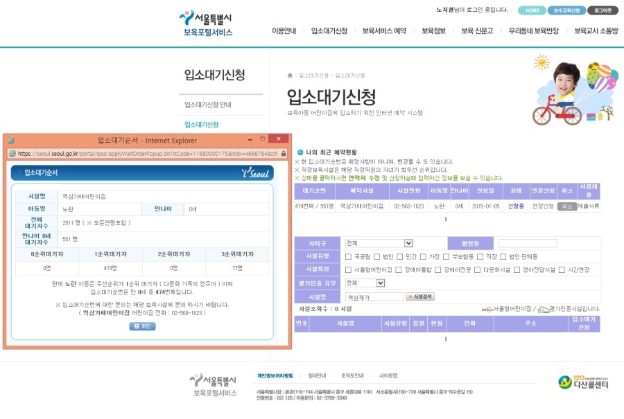 서울특별시 보육포털사이트에
