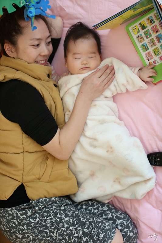 잠도 이제는 젖을 안물리고