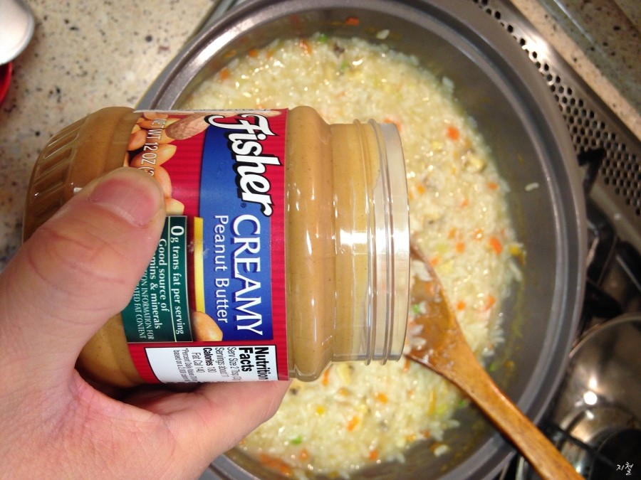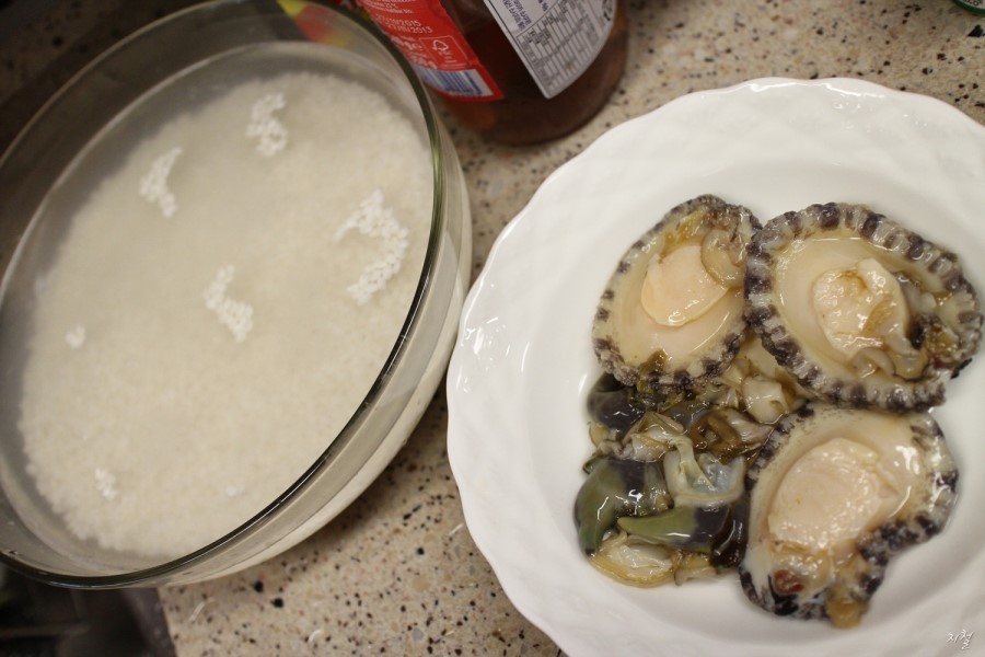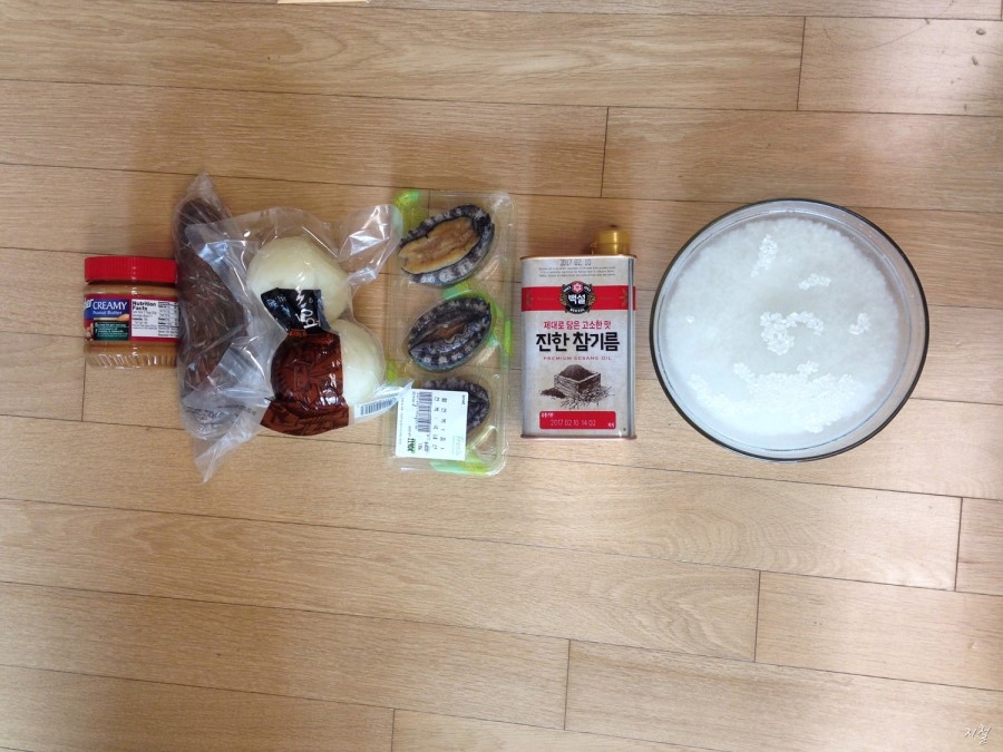 불린쌀 참기름 전복 당근 양파 땅콩쨈!!