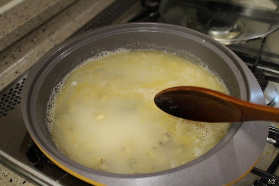 건져서 일단 끓인 후 뜨는 것들을 버리고