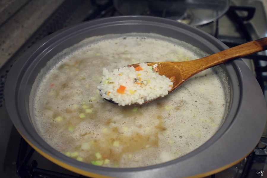 눌러붙지 않게 저어줍니다 '