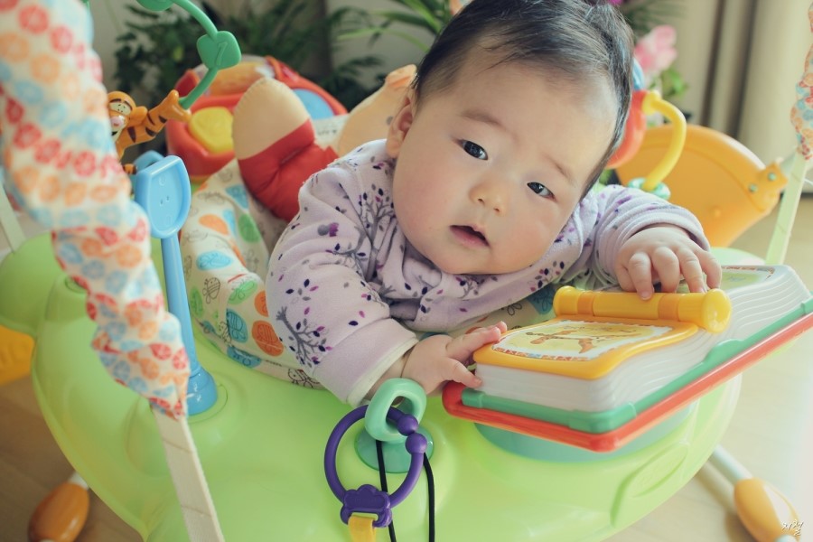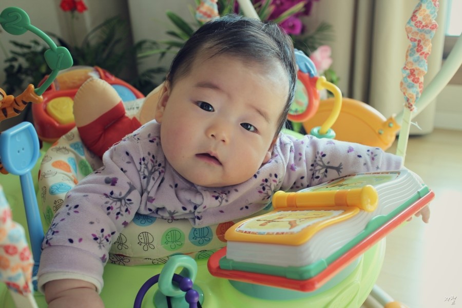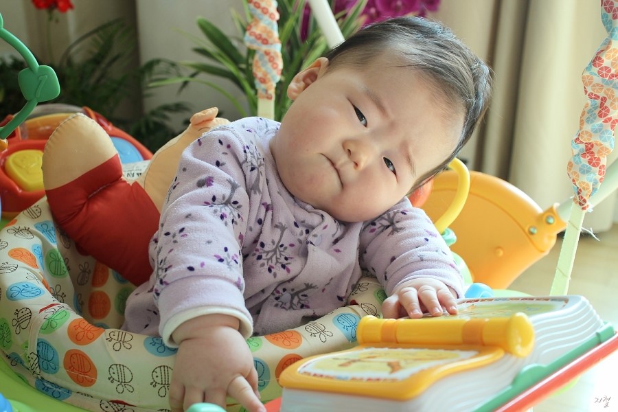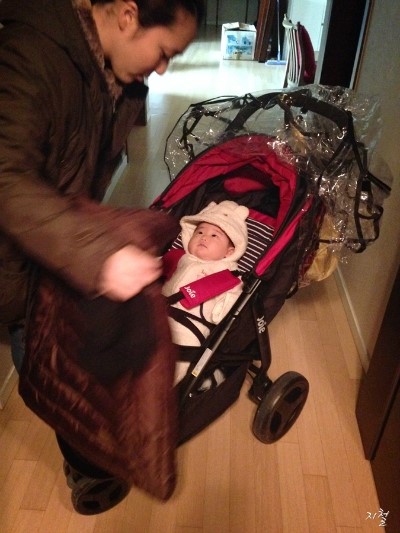 란이 처음으로 타보는 유모차