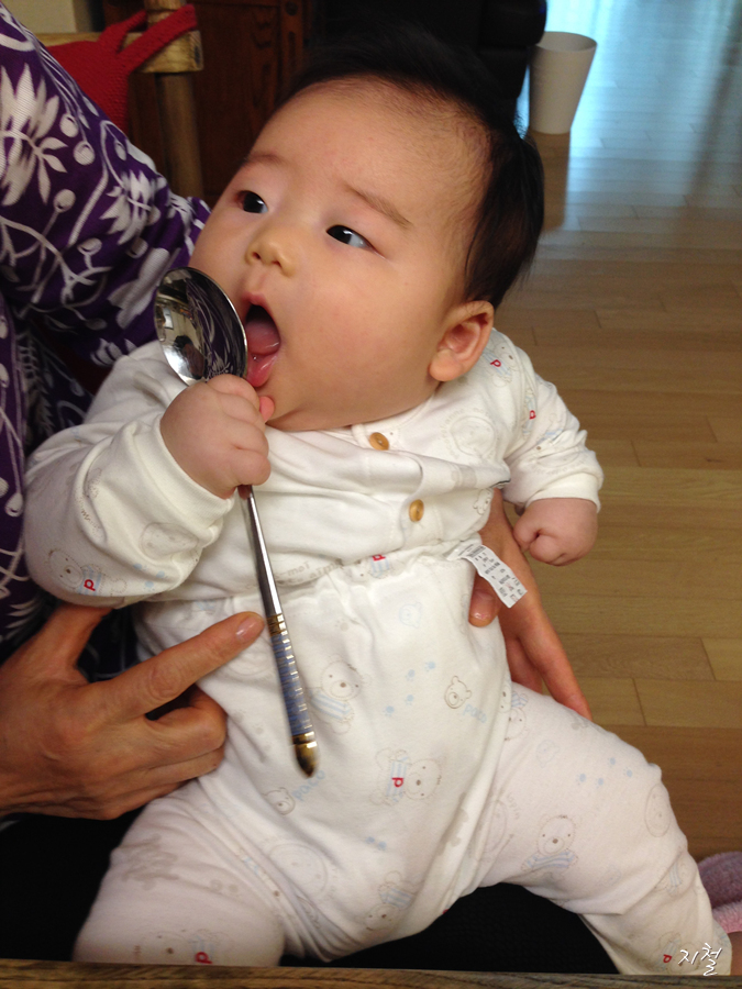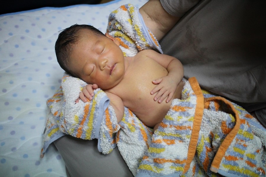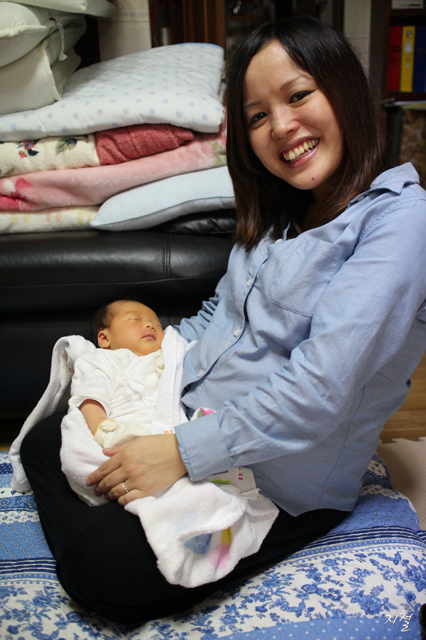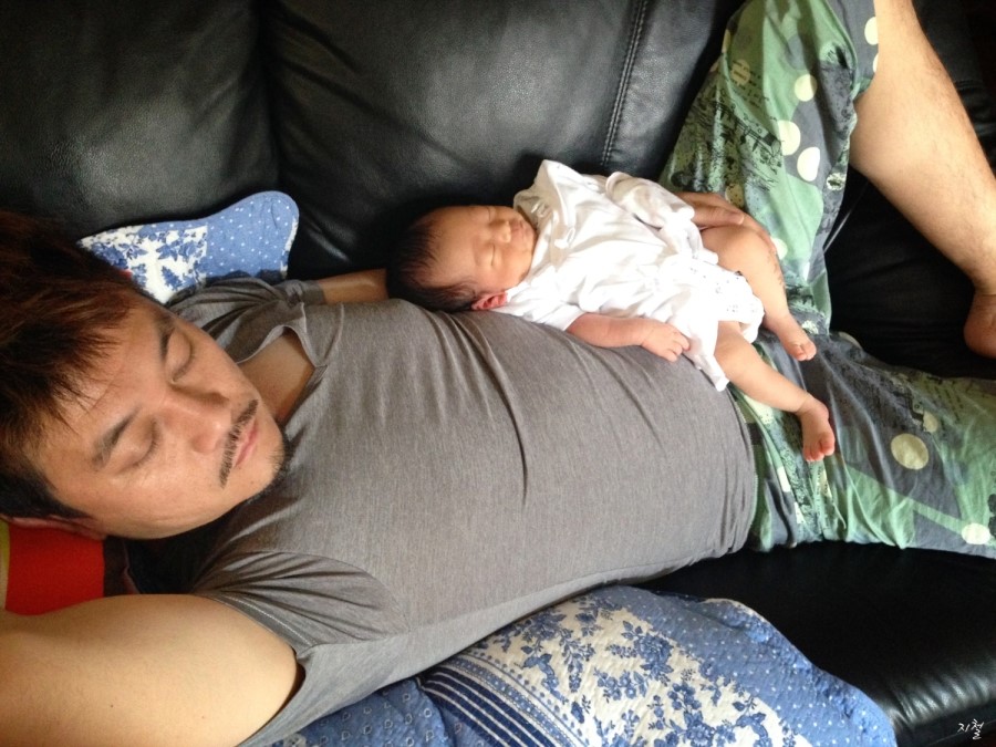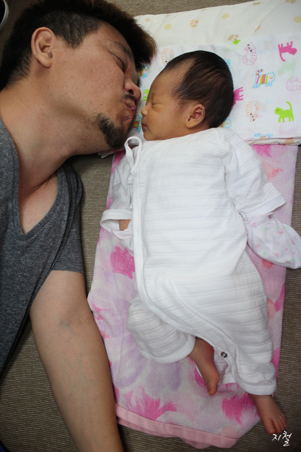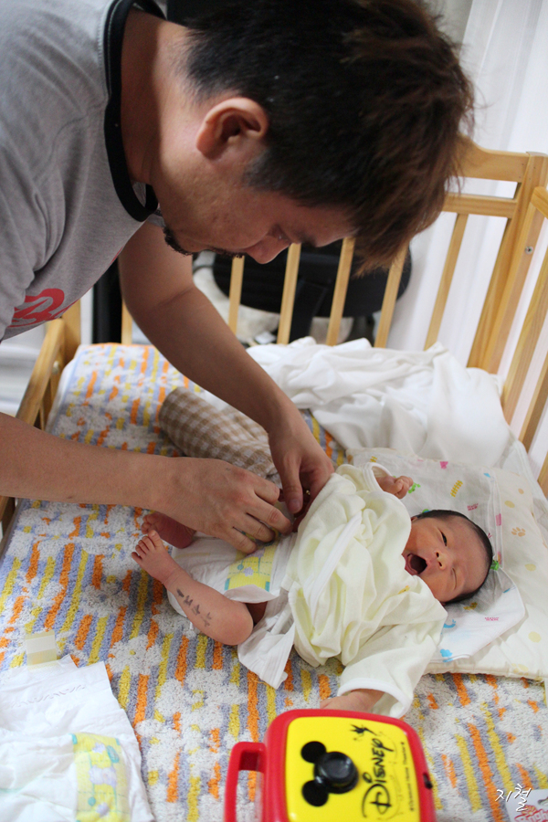란이가 울면 바로 기져귀를 갈아주는 남편