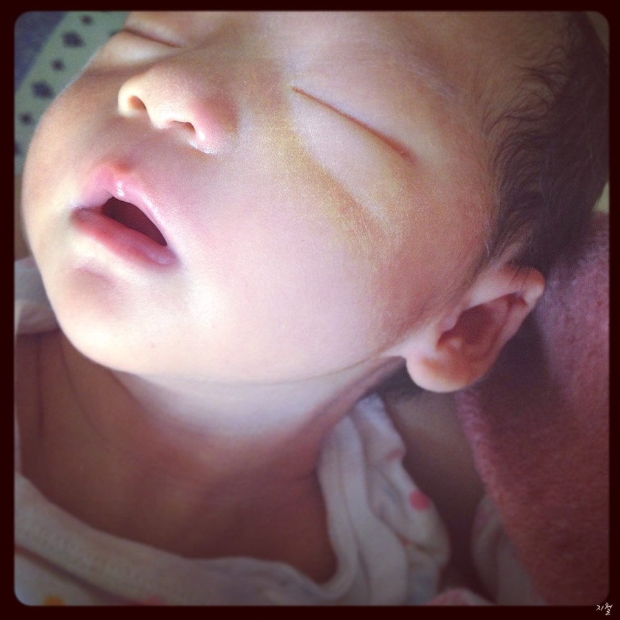 얼굴이 더 노랗게 된 황달이 조금 있는 란이