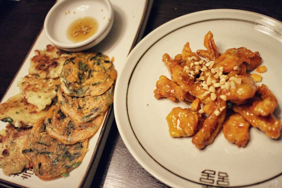 부침개들과 생선 탕수육?