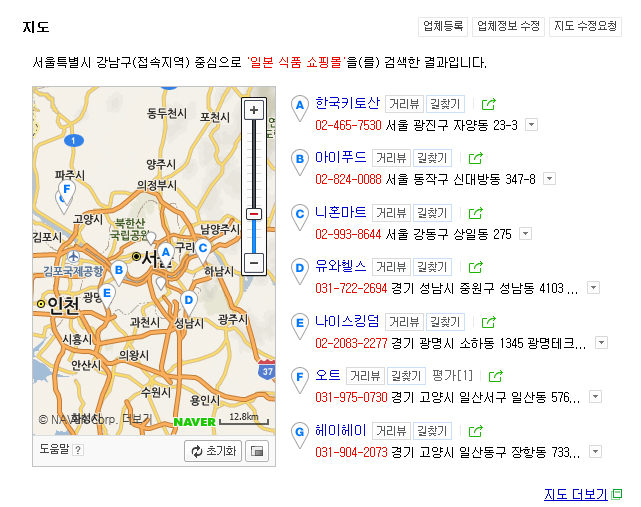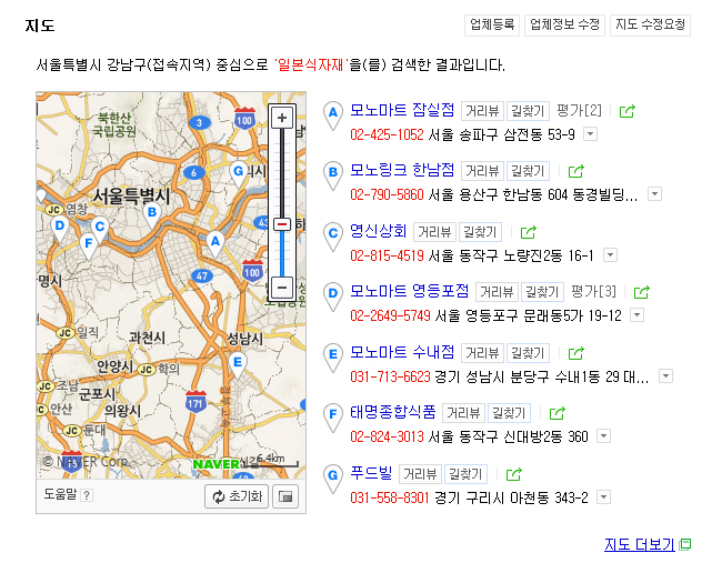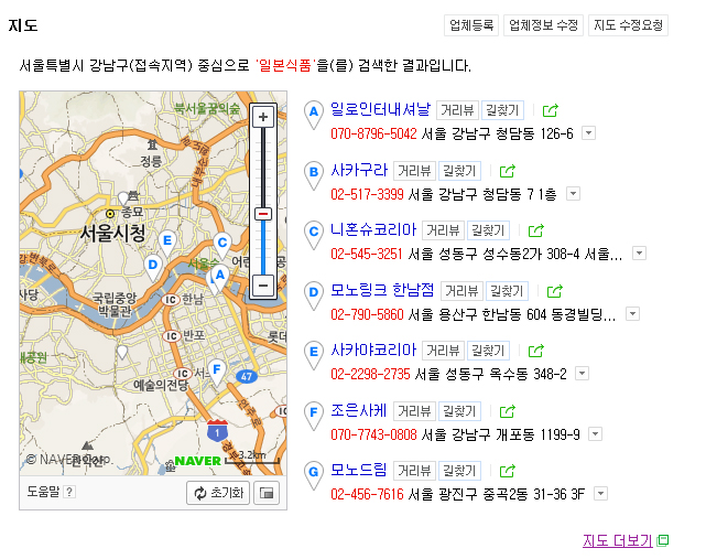 강남구과 송파구 인근의 일본식품점을 찾았습니다
