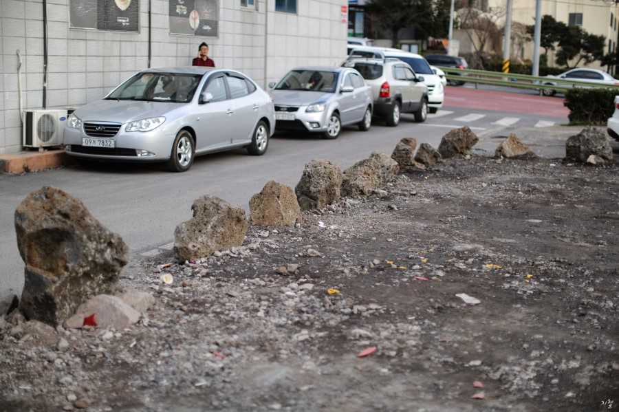 제주도의 식당 주차장은 현무암으로~