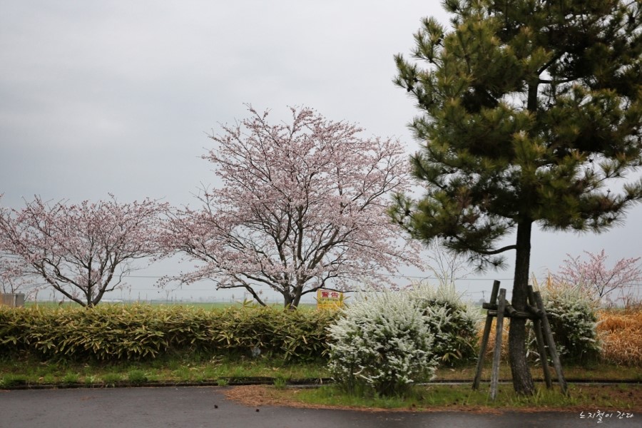공항 근처에 벚꽃이 저희를 반깁니다