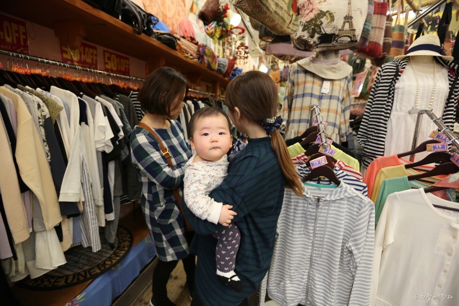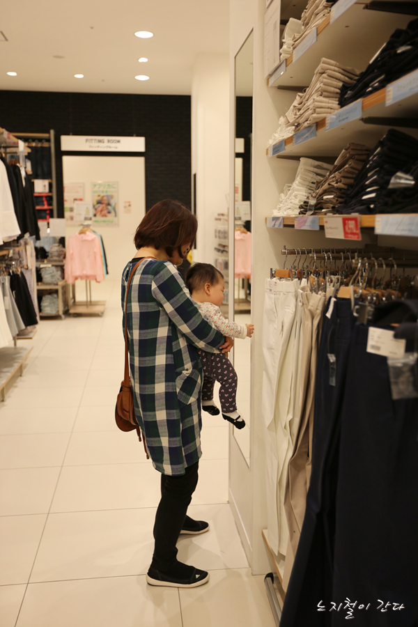 저희는 유니클로에서 란이 옷을 쇼핑했습니다