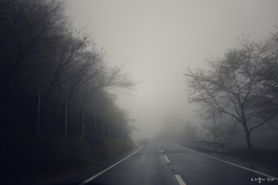 무서운 안개낀 길을 놓치지 않고