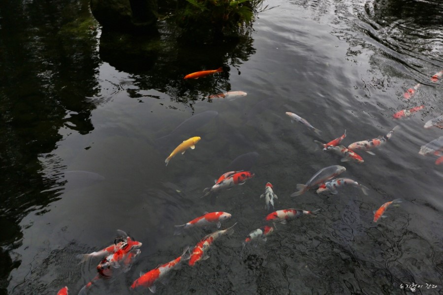 다양한 색상의 잉어들이 참 아름다웠는데
