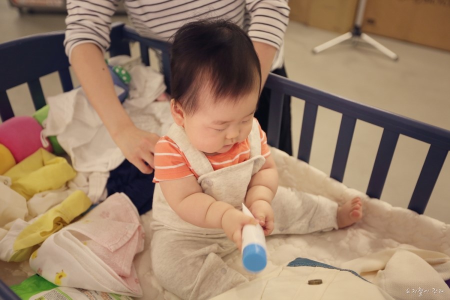 아이들을 달래중 장난감~