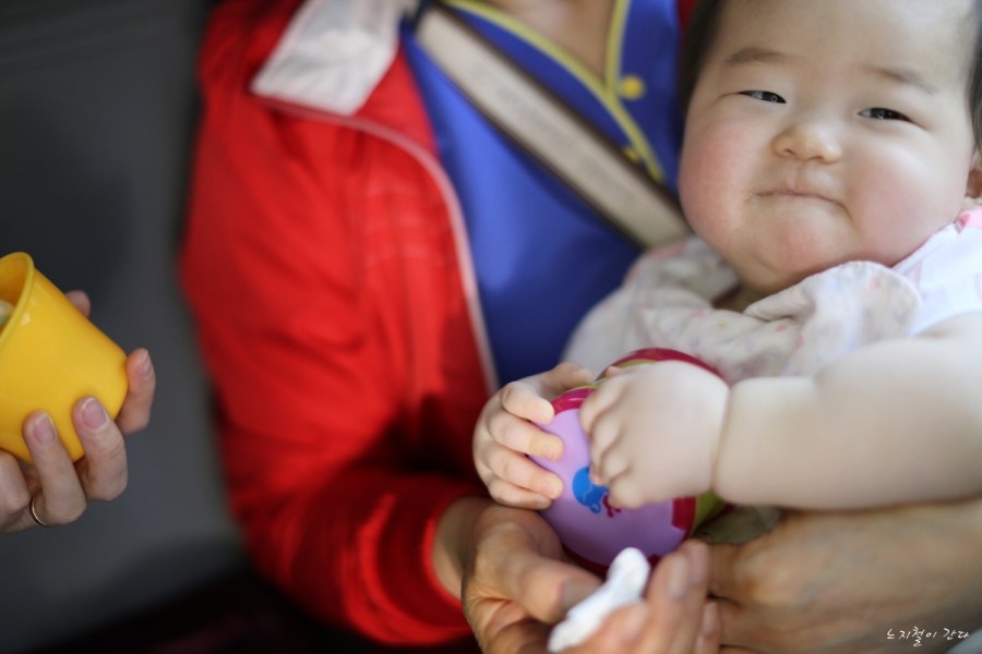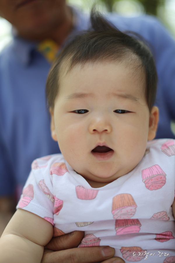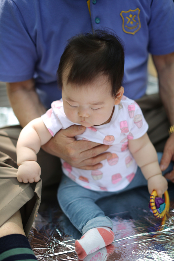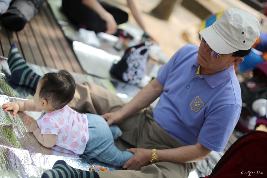 이제는 할아버지 품에 잘도 앉아 있습니다
