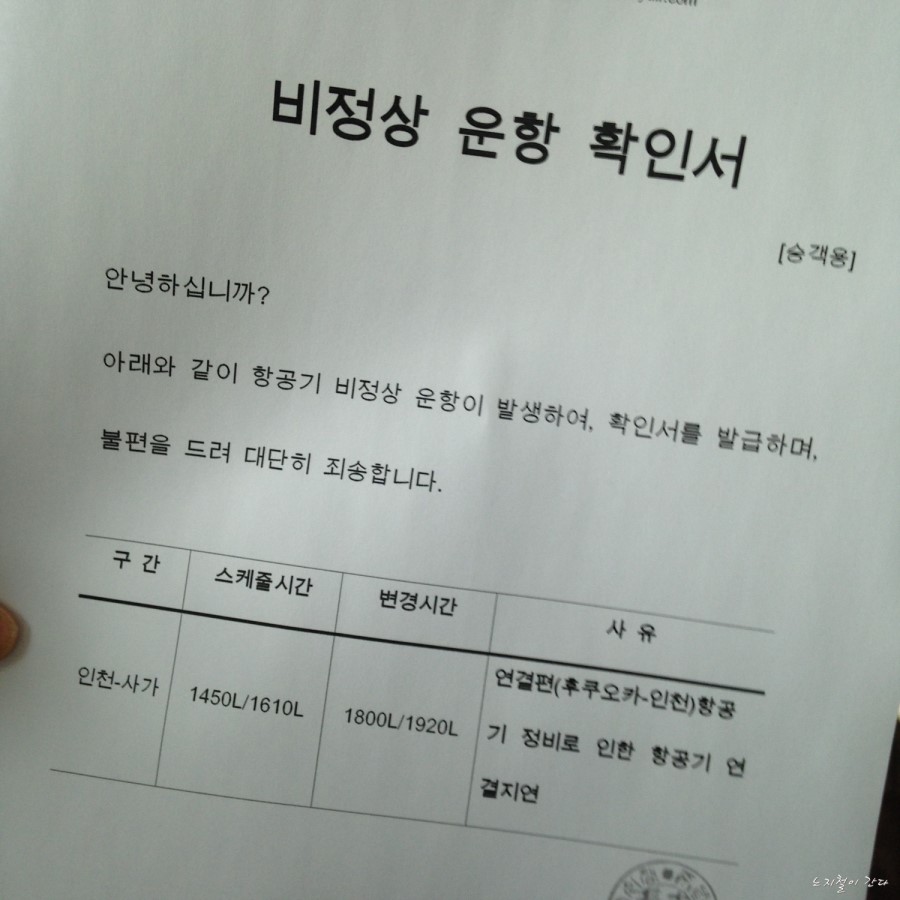 인천 - 사가행 비행기는 점점 고객이 주는 건지