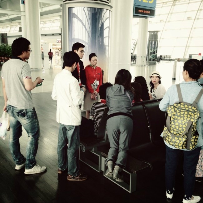 김포공항역에서 인천공항으로 가는 전철을 타기 위해