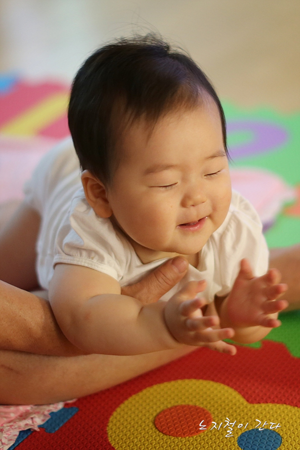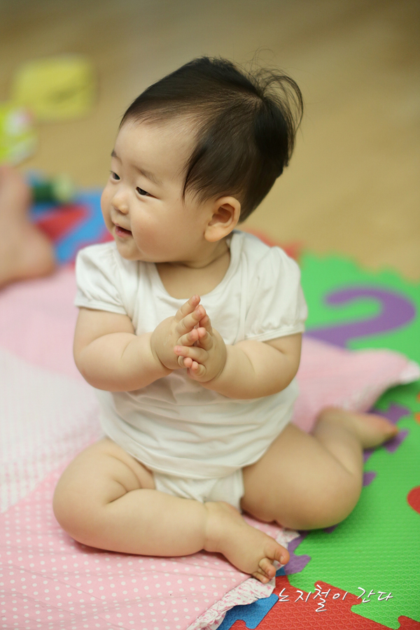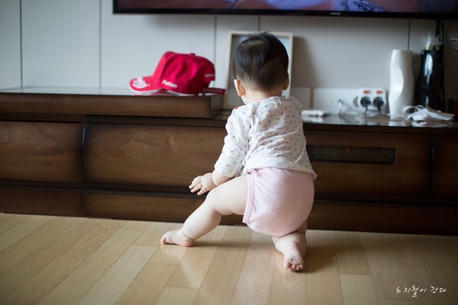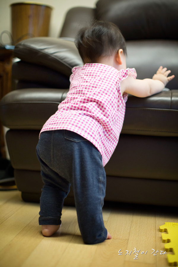 소파를 잡고 혼자 일어나기도 합니다 ^^