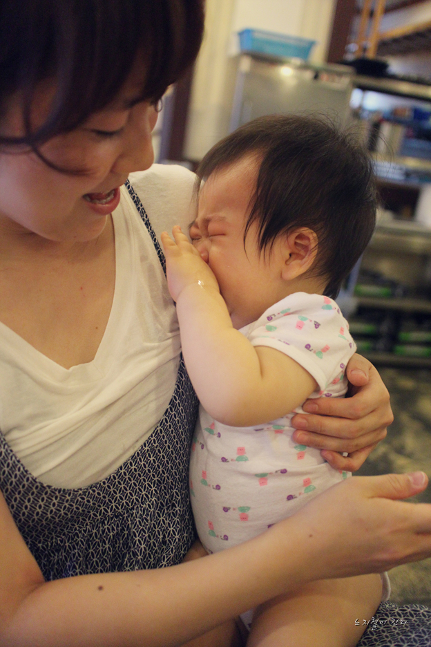 엄마가 좀 뜨거운 상태에서 누릉지를 먹여서