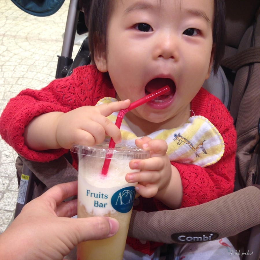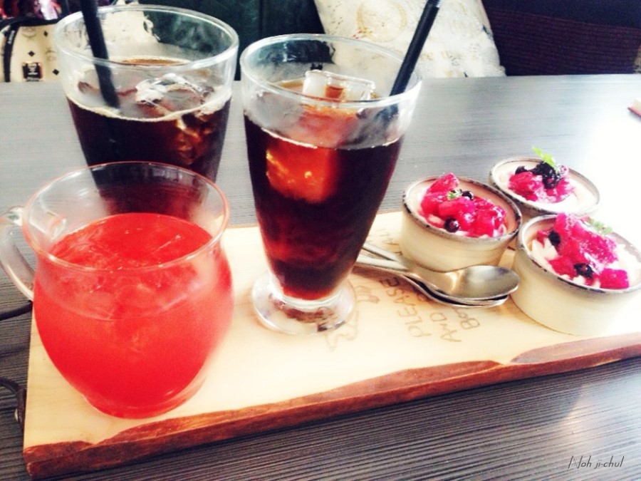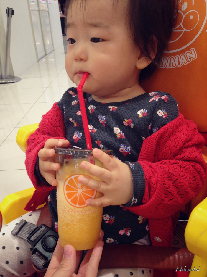 생과일 주스를 먹습니다