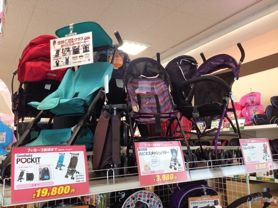 ![]() 100엔에 빌렸다는 완전 옛날식 유모차와