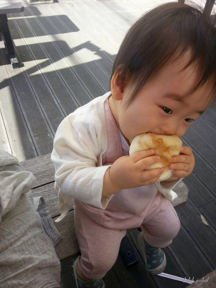 맛있게 빵을 먹고 있다는 에미씨