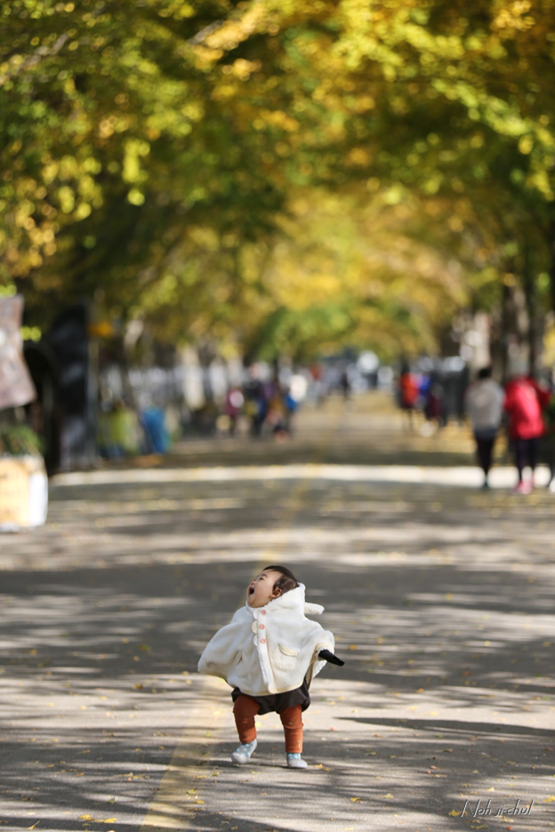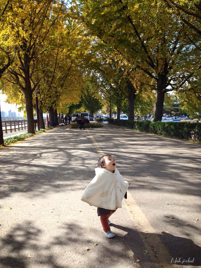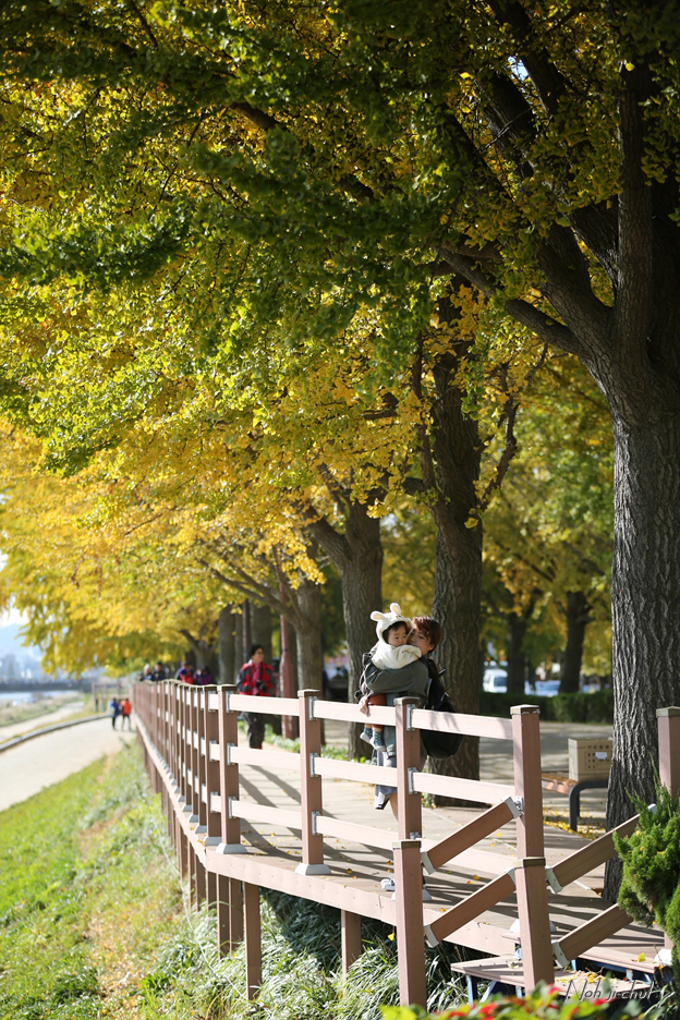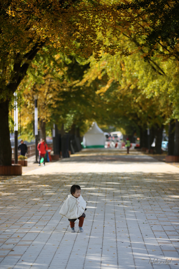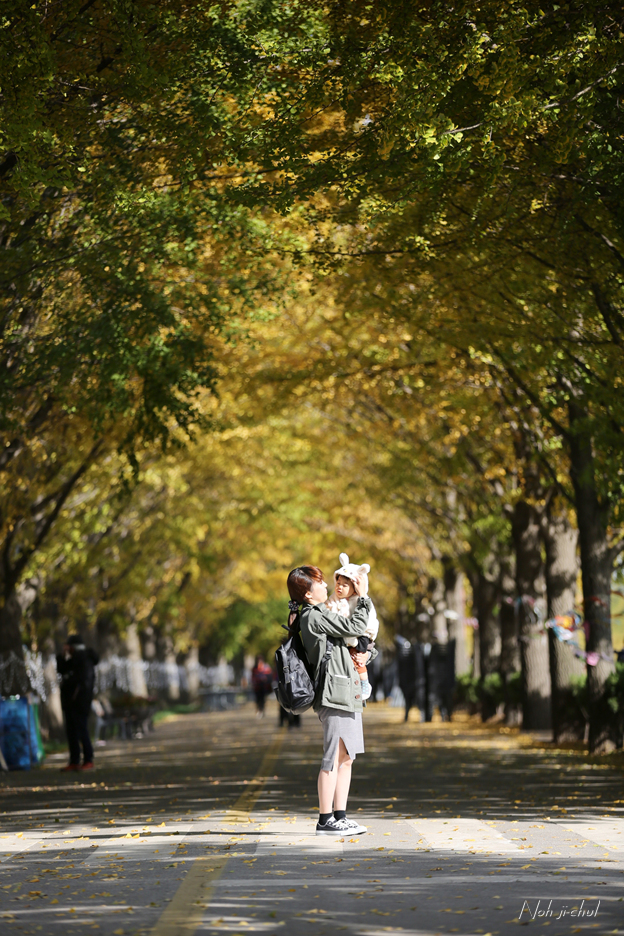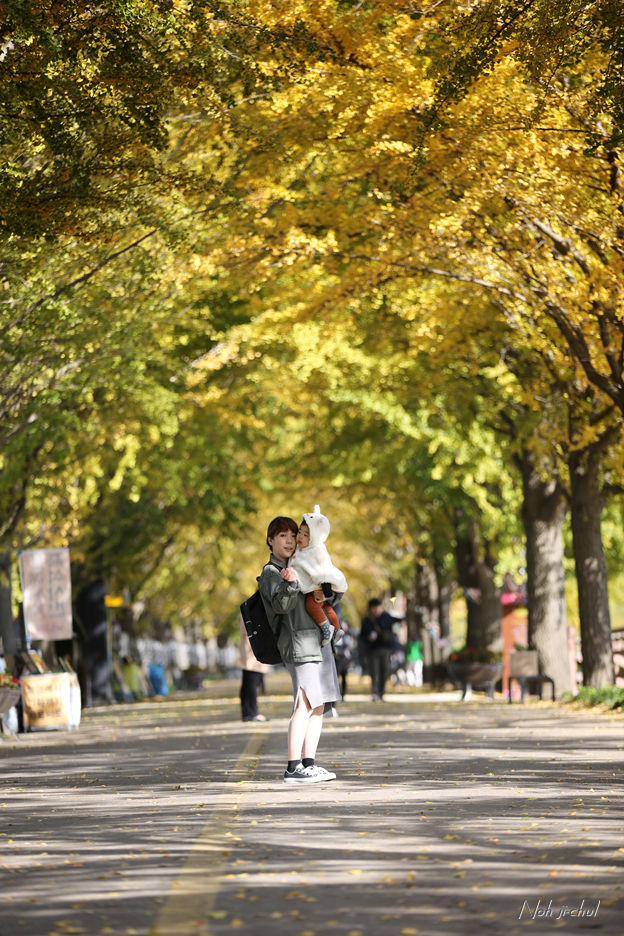 노란이와 은행나뭇길의 사진을