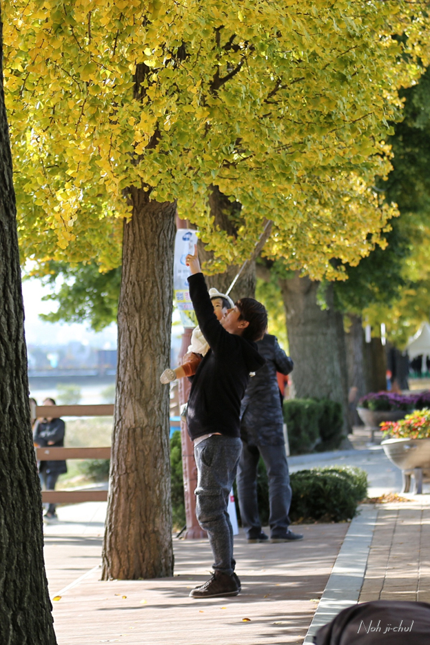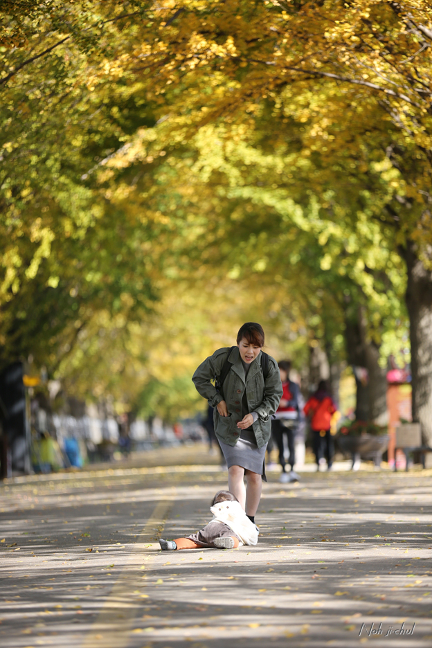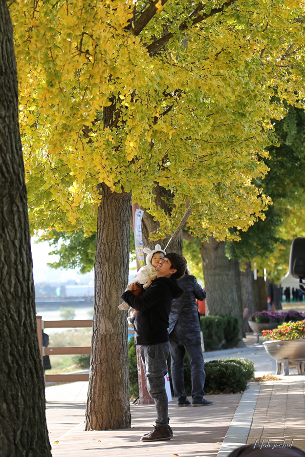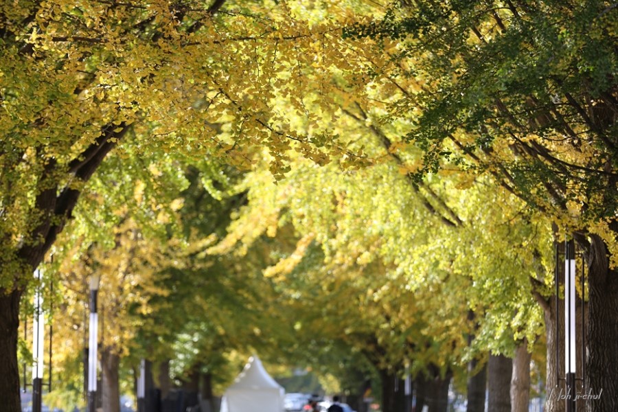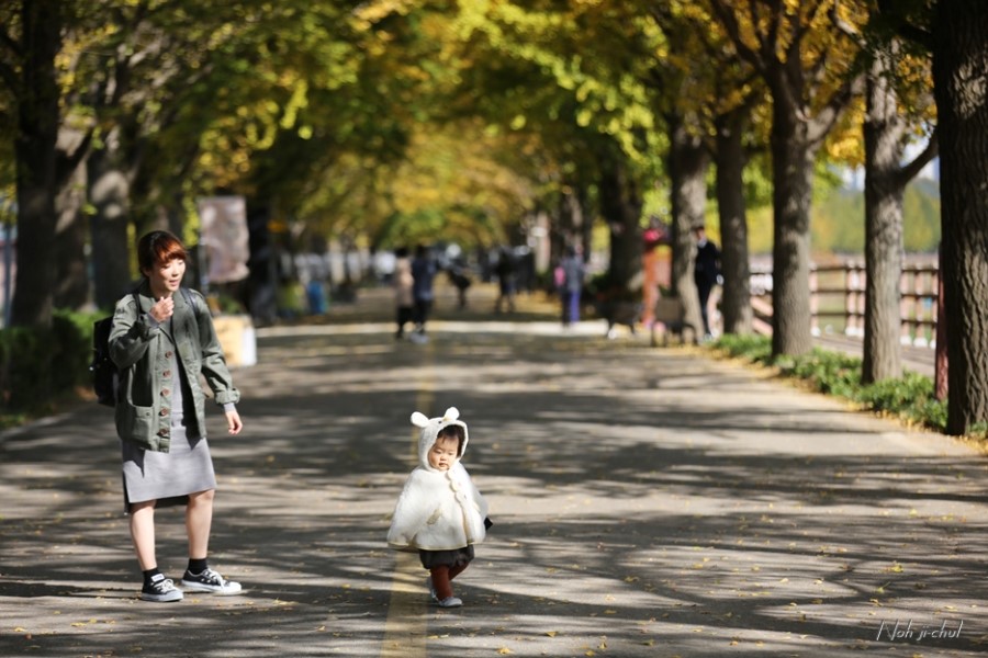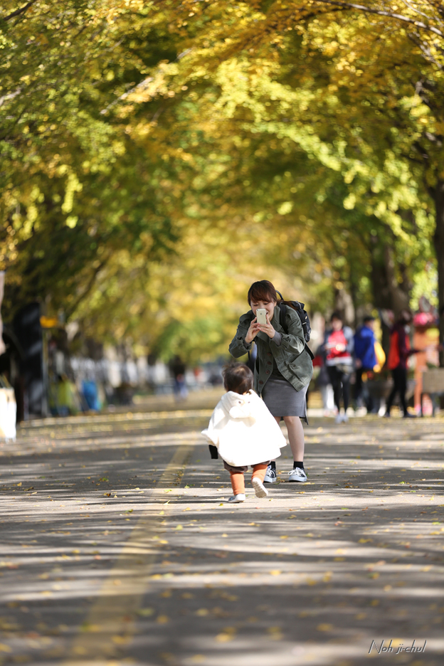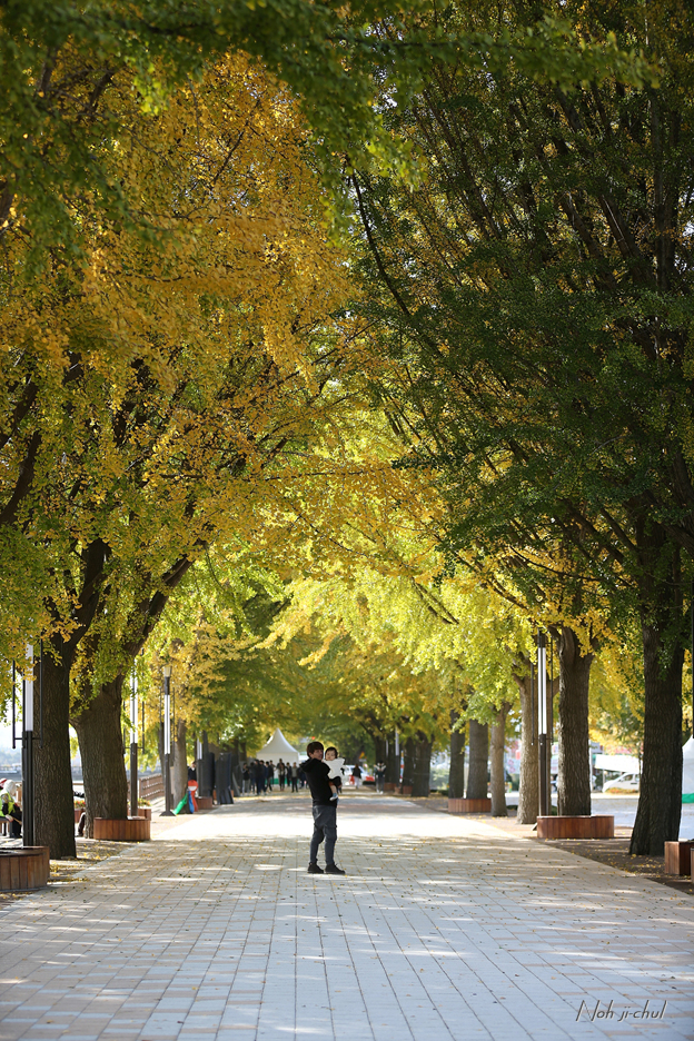 노란이와 은행나뭇길의 사진을