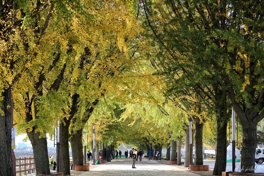 노란 단풍나무가 나란히 서 있는