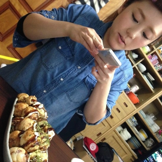 ![]() 열심히 타코야키의 사진을 찍는 에미씨