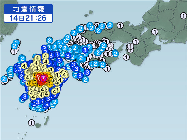 2차 지진은 큐슈 전역에 걸쳐 발생했다고 합니다