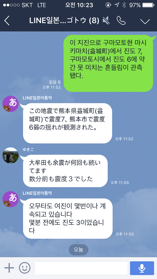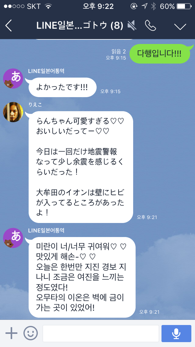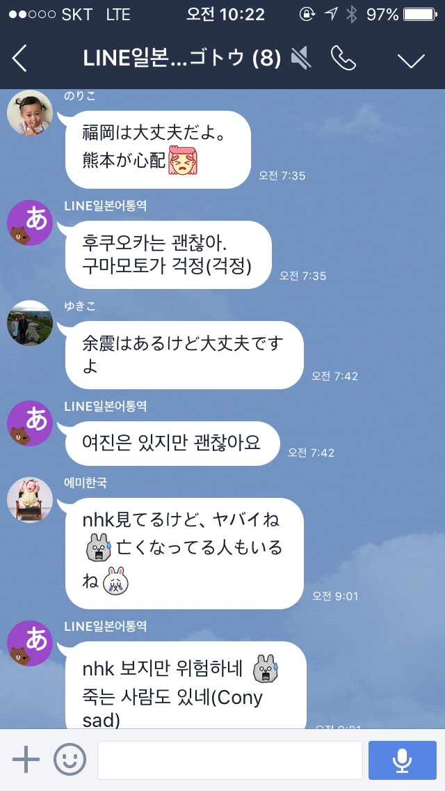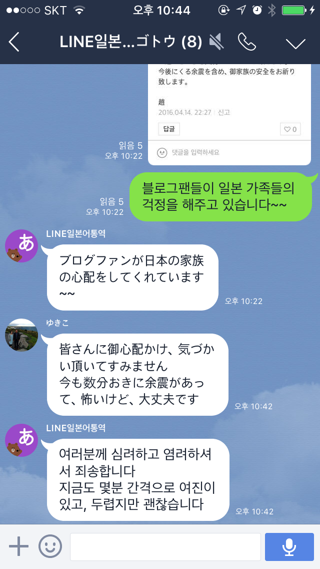 1차 지진때 다행이도 괜찮다는 소식을 받았습니다